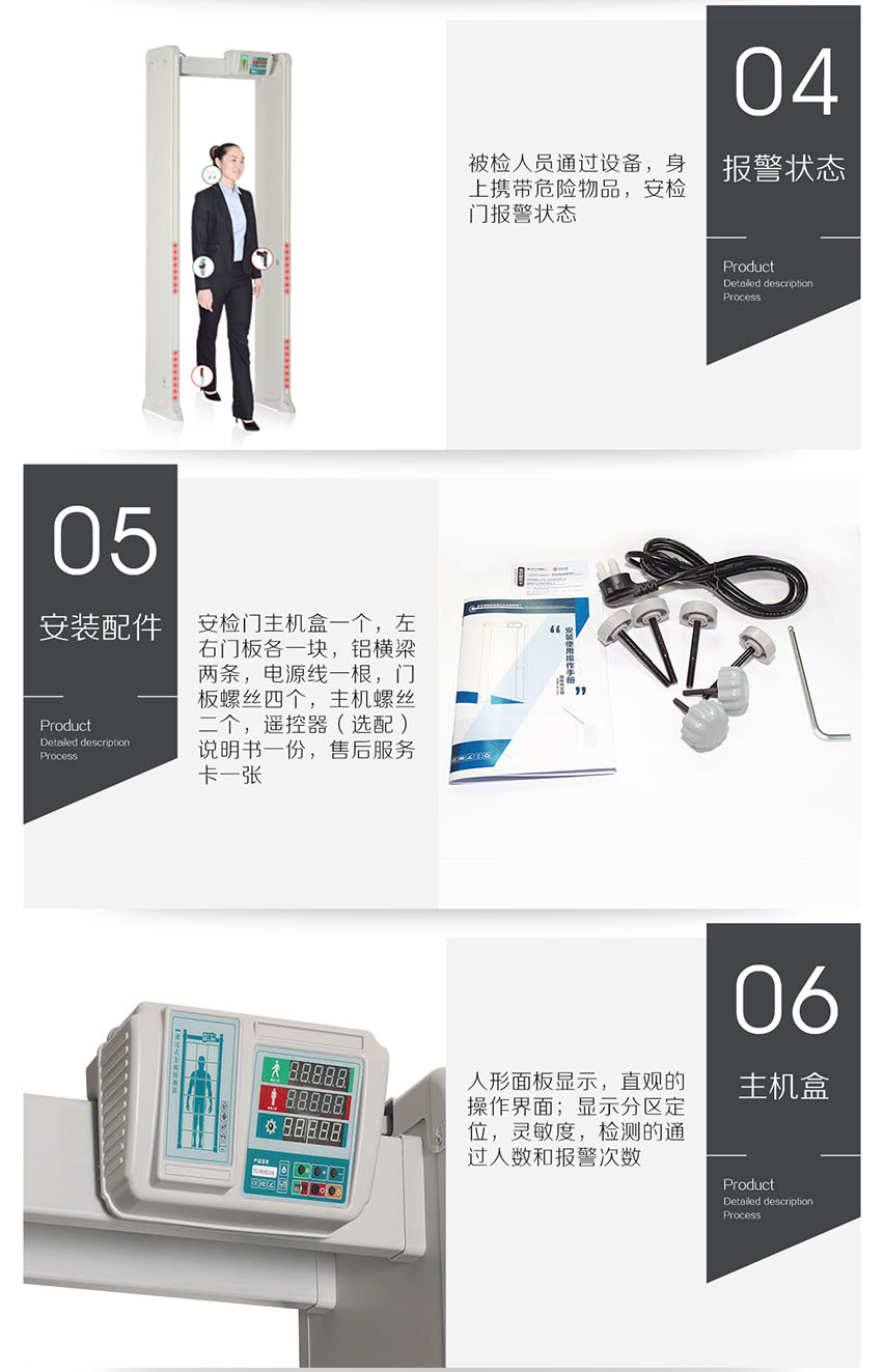 HC-TY300D金屬探測門(橫梁式)感應快、探測準、靈敏度高、抗干擾強、高穩定性,電源設計在主機頂端,防水防潮,非常人性化;能滿足各行業用戶需求。此款安檢門嚴格執行國家《GB15210-2003通過式金屬探測門技術通用技術規范》;